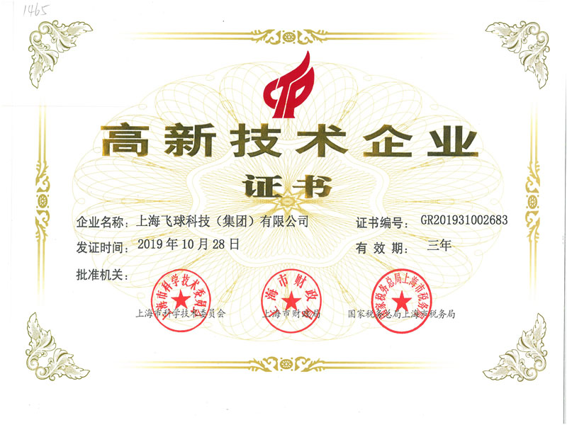 上海飛球科技(集團)有限公司順利通過高新技術企業認定,獲得了由上海市科學技術委員會、上海市財政局、上海市國家稅務局、上海市地方稅務局聯合頒發的“高新技術企業證書”,有效期為三年,這是對上海飛球研發工作極大的肯定。上海飛球以優良的品質,合理的價格,周到的服務贏得了國內外用戶的好評。為更好的服務于用戶,我們將一如既往的發揚“飛球人”追求“高質量、高效率”的精神,堅持以人為本、依靠科技管理,為廣大用戶提供高質量的產品和一流的服務。