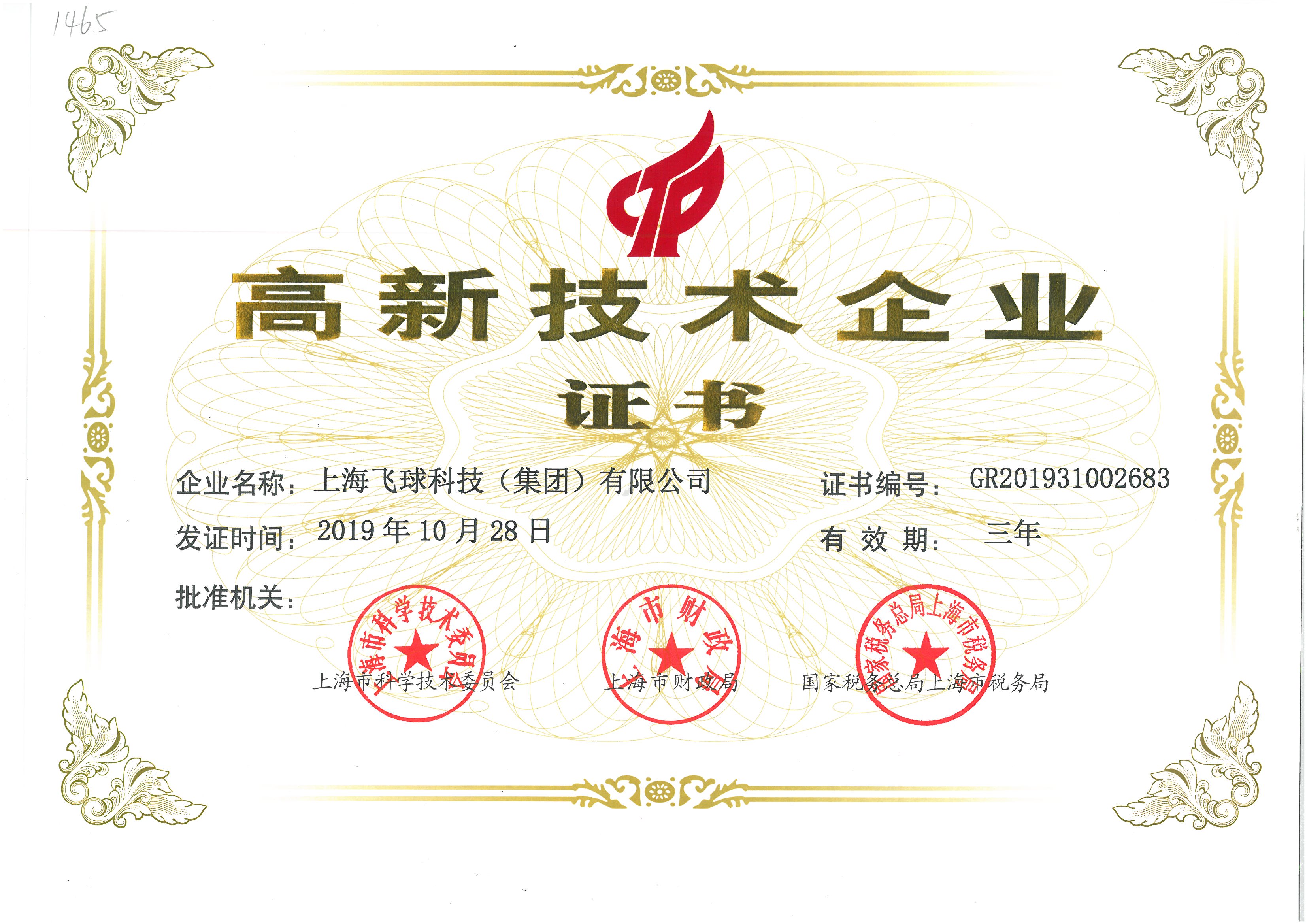 上海高新技術證書