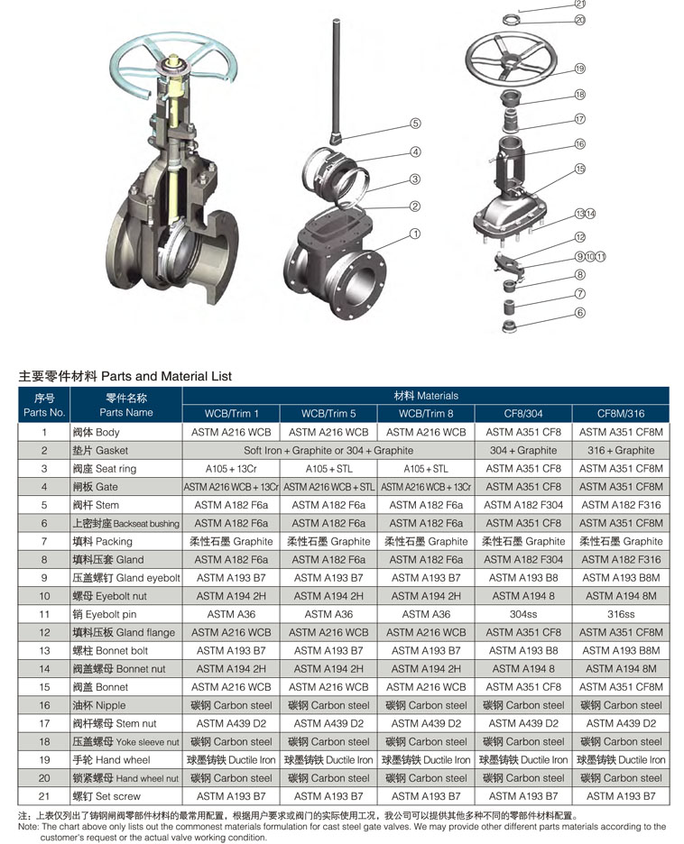 Design and Manufacture: Cast steel gate valve to API 600 (ISO 10434) or API 6D; Cast stainless steel gate valve to API 603 or API 600;