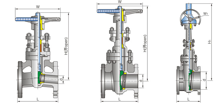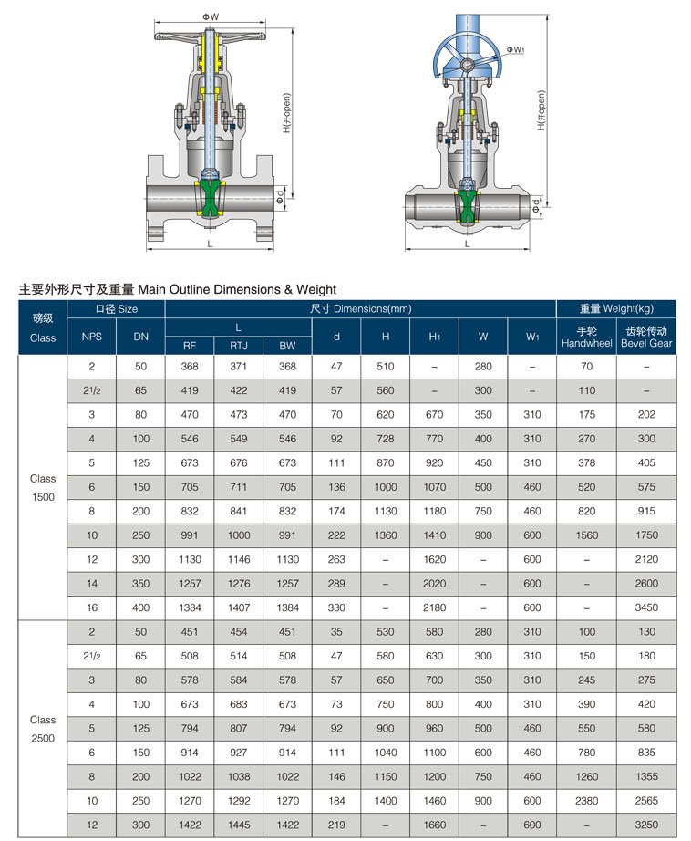 Class 150一Class 900 gate valves are usually used to bolted bonnet design. Class 1500一Class 2500 gate valves are usually used to pressure seal bonnet design