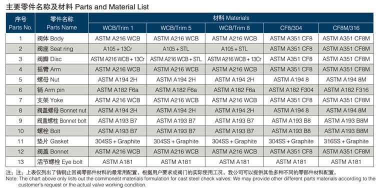 The Features of Check Valve: Bolted Bonnet; Swing and lift disc; Metallic seating surfaces;