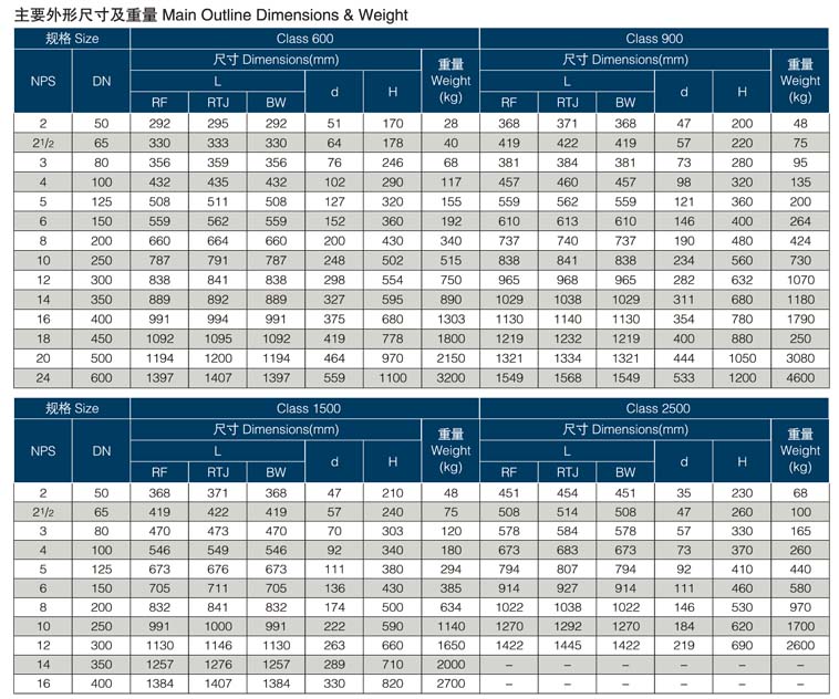 End flange dimension: ASME B16.5 (for NPS<24), ASME B16.47 series B, API 605 or ASME B16.47 series A, MSS SP-44 (for NPS > 24)